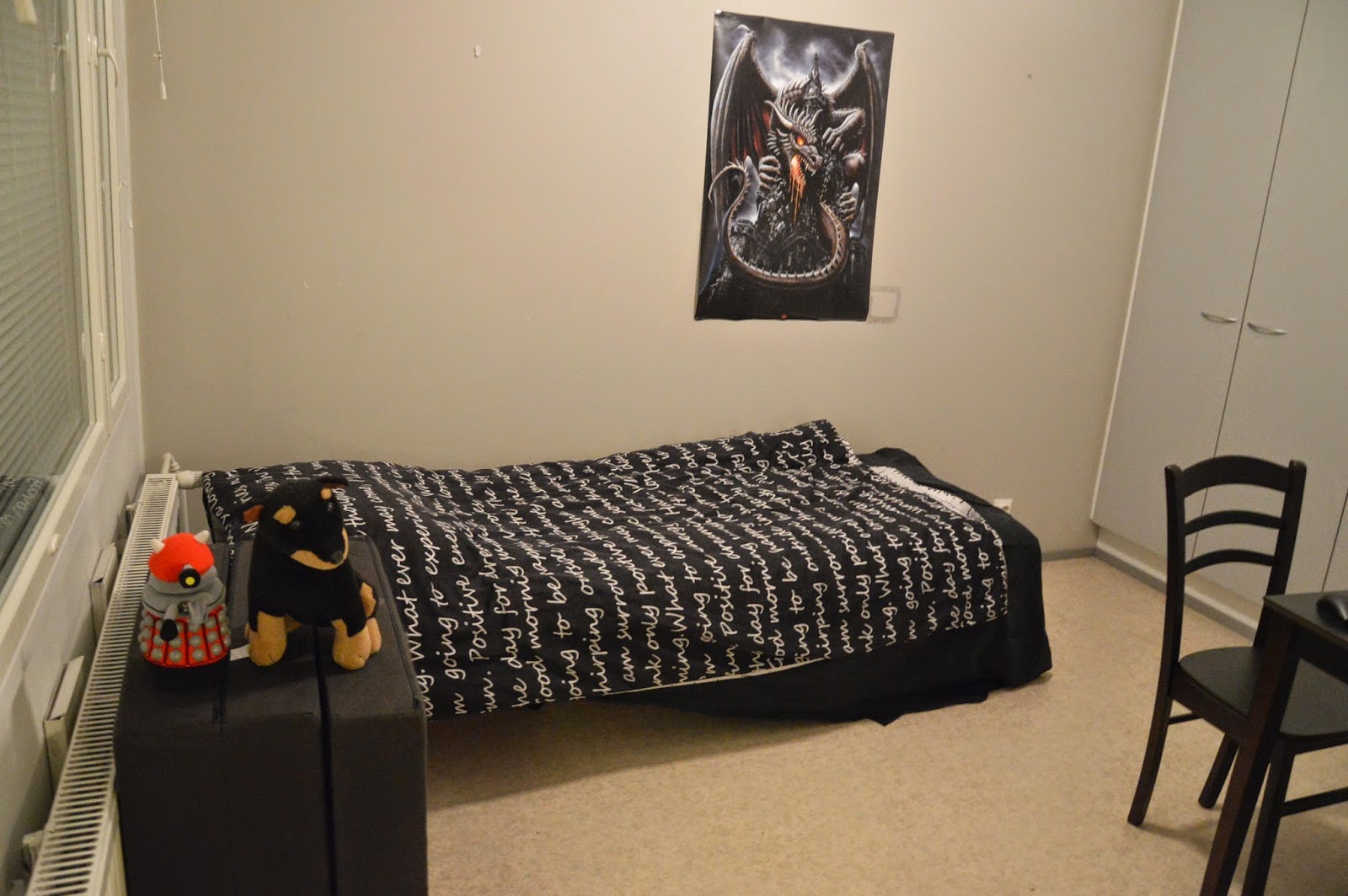 ..mutta nykyään huoneeni näyttää tältä. Ja onhan miulla dobermanni ja Dalek vahtimassa! :D